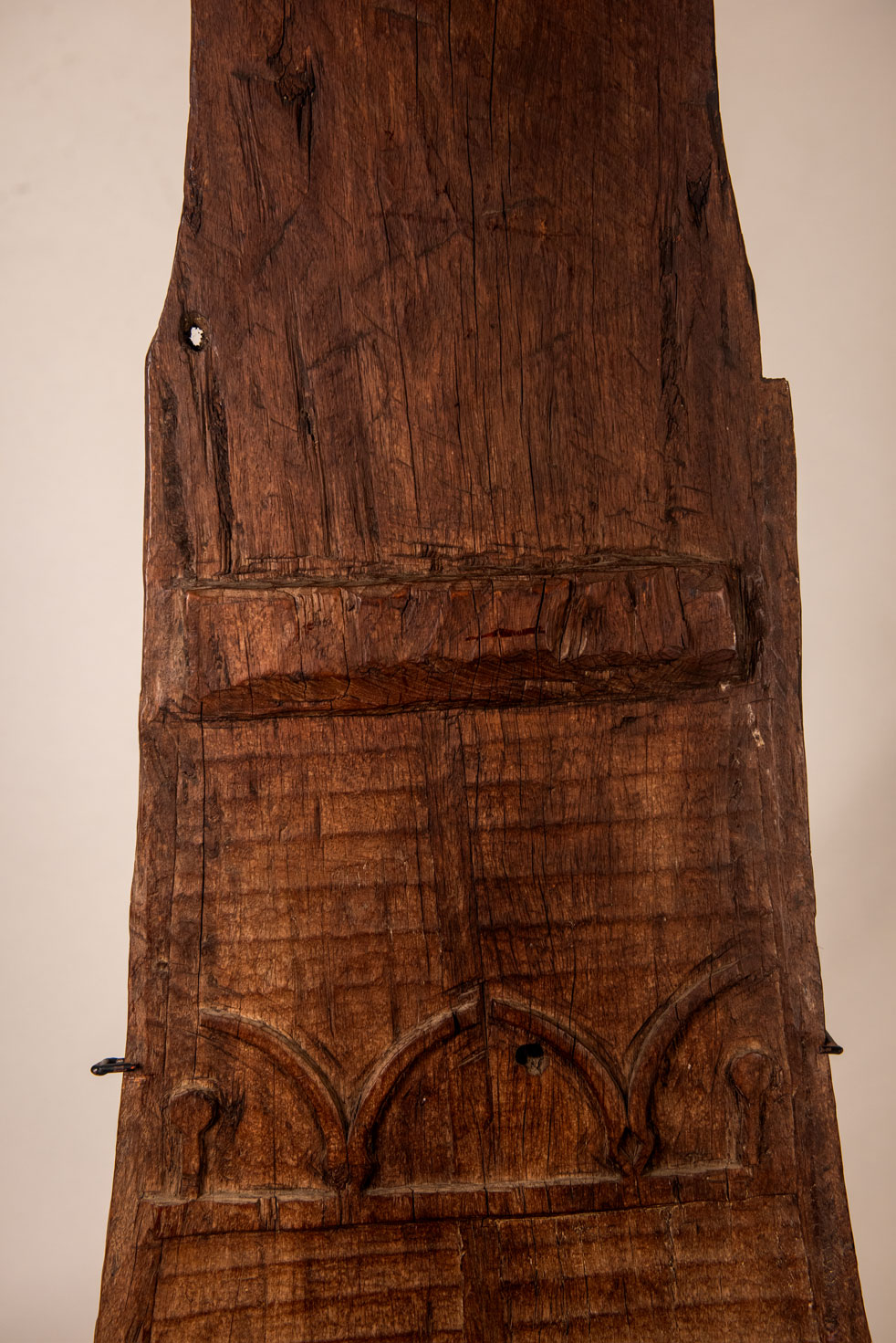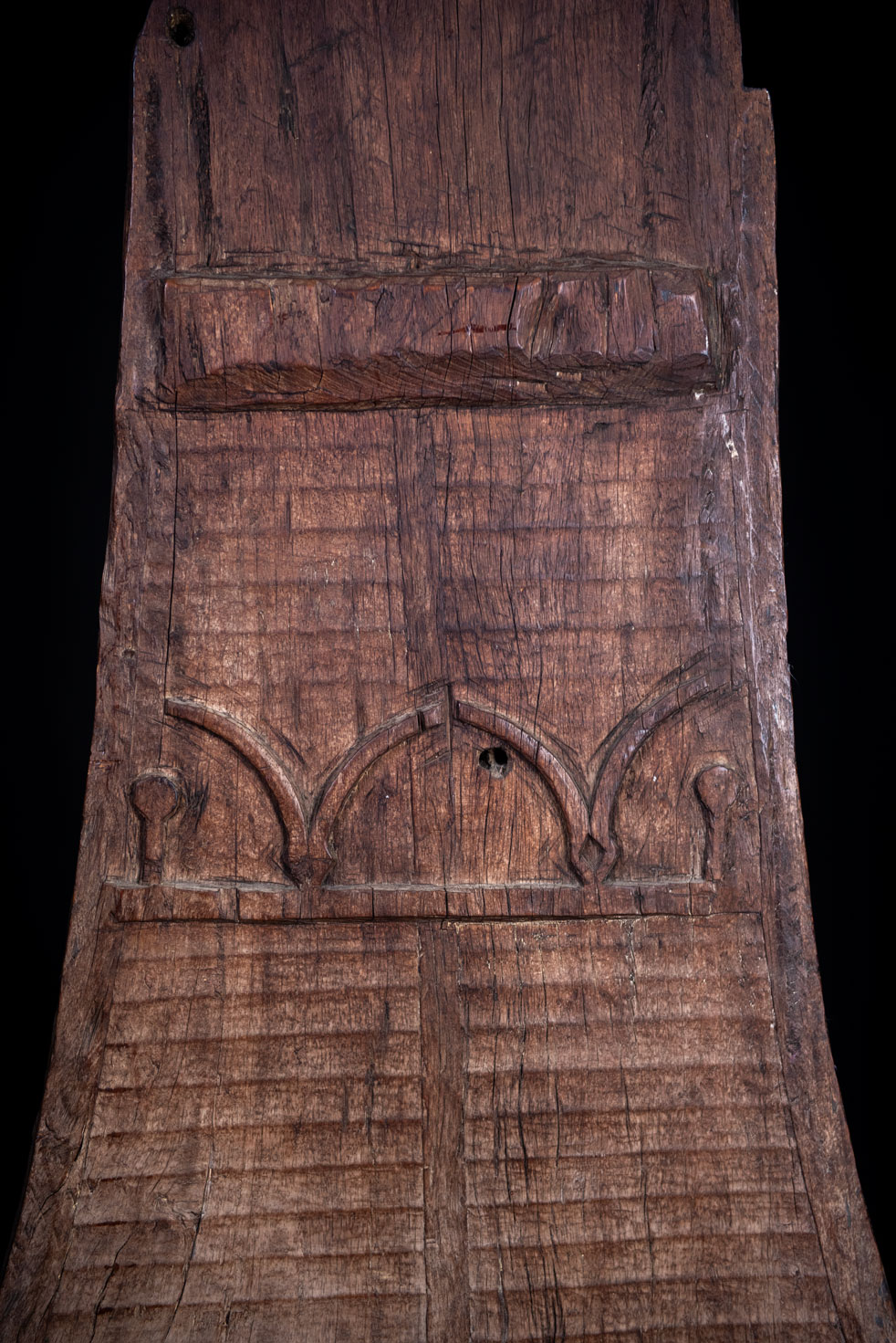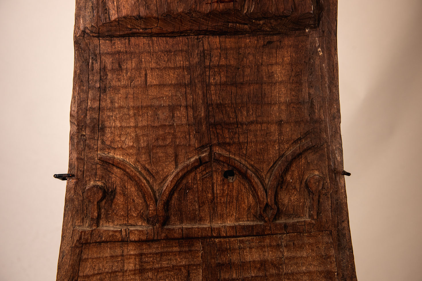 Among the Yami (Tao) people of Lanyu (Orchid Island), the tomok serves as the spiritual core of the traditional house. This central pillar, carved from wood in a triangular shape—broad at the base and narrow at the top—is vertically installed beneath the ridge beam of the rear chamber. Due to its symbolic importance, it is also known as the “ancestral pillar.” In the Yami language, it is referred to as tomok. Typically made of mangosteen wood, the tomok is often topped with a V-shaped motif resembling goat horns, symbolizing longevity and prosperity. While these motifs are missing on many older examples, the surface often still shows shallow, horizontal wave-like carvings. Because Lanyu Island is frequently struck by typhoons and strong winds, traditional houses are built partially underground—sometimes one to two meters deep—for better protection. The home is organized in three ascending sections: a front porch, a front room, and a rear room. Only individuals with high social standing are permitted to construct a house with three or four doors and erect a tomok. Each step—from selecting and shaping the wood to its final placement—is carried out with great care and follows ritual protocols. The installation must take place on an auspicious day and is accompanied by specific taboos and sacrificial rites, including the slaughter of a pig or sheep, whose blood is smeared on the pillar. Once the house is completed, the owner performs a ceremony in front of the tomok to officially name the heir to the pillar. As the Yami people live in nuclear families, each house is used by only one generation. When the father dies, the house is dismantled. The tomok is inherited by the eldest son, and the remaining building materials are divided among all sons. Structurally, the top of the tomok includes a slim cylindrical tenon for connection with the ridge beam, and two holes near the top for binding. Its silhouette—wide at the bottom, narrow at the top, and gently curved—combines functional design with deep cultural meaning.